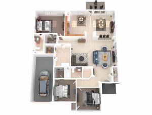 This community offers homes with vinyl siding and many with a one car garage/car port. All the homes in this community are single story, stand-alone homes and are within walking distance to playgrounds, sports courts, the community center and outdoor pool. The community is centrally located to all four City of Warner Robins Schools. The homes in this community offer many different flooring types, including VCT floors, carpet and/or plank flooring. Select homes have upgraded paint, flooring, lighting and appliances. Our homes are well priced for the area. This floor plan offers a master suite with walk-in closet. The other bedrooms share a bathroom. Residents will also enjoy an additional interior storage space. The kitchen offers an open concept with large living and dining spaces.
