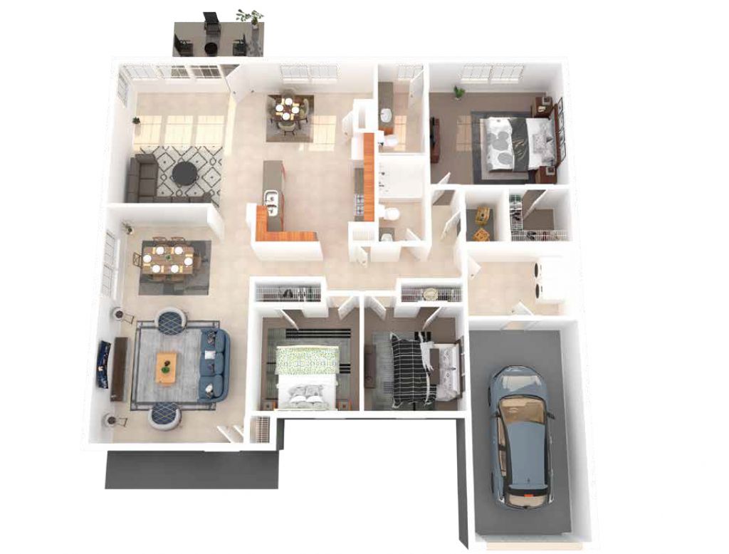 This community offers homes with vinyl siding and many with a one car garage/car port. All the homes in this community are single story, stand-alone homes and are within walking distance to playgrounds, sports courts, the community center and outdoor pool. The community is centrally located to all four City of Warner Robins Schools. The homes in this community offer many different flooring types, including VCT floors, carpet and/or plank flooring. Select homes have upgraded paint, flooring, lighting and appliances. Our homes are well priced for the area. This floor plan offers a master suite with walk-in closet. The other bedrooms share a bathroom. Residents will also enjoy an additional interior storage space. The kitchen offers an open concept with large living and dining spaces.