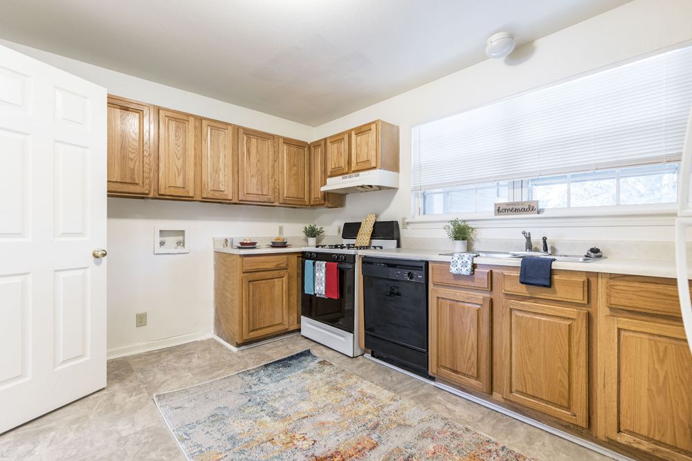 Homes in this community have brick exterior and offer a one car carport. These homes offer additional storage on the exterior of the home in lockable storage rooms. These beautifully established homes offer attic fans which can help cool your home. We have some homes with upgraded flooring, painting, lighting fixtures and upgraded appliances. Our homes are very reasonably priced for the area. These homes offer many different flooring options including VCT flooring, carpet and/or plank flooring. The master suite has a private bath and secondary bedrooms have a hall bath to share. Washer/Dryer hookups are available as well as plenty of kitchen cabinets and counter space.